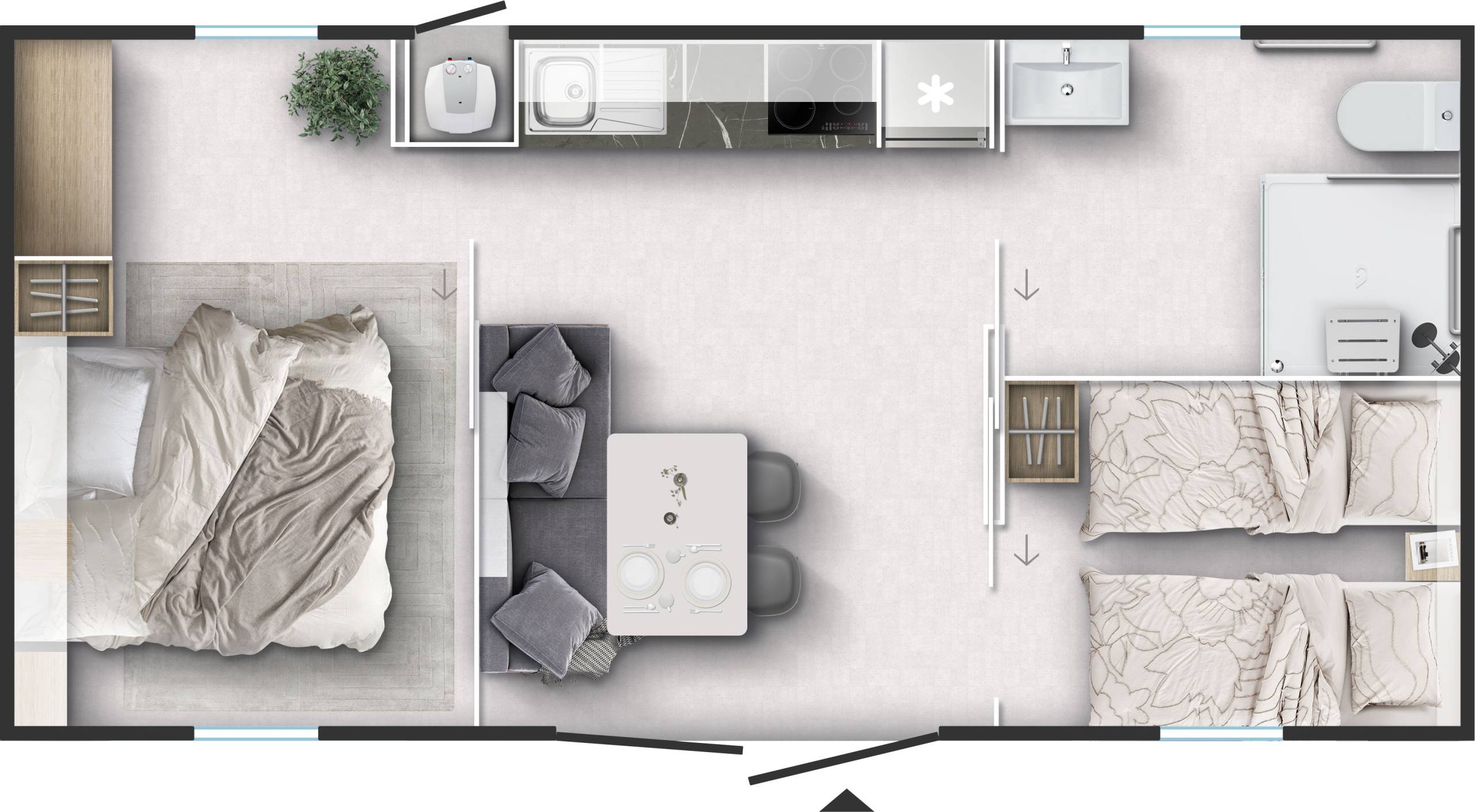 Built-in blinds on all windows - matching colour of windows and doors